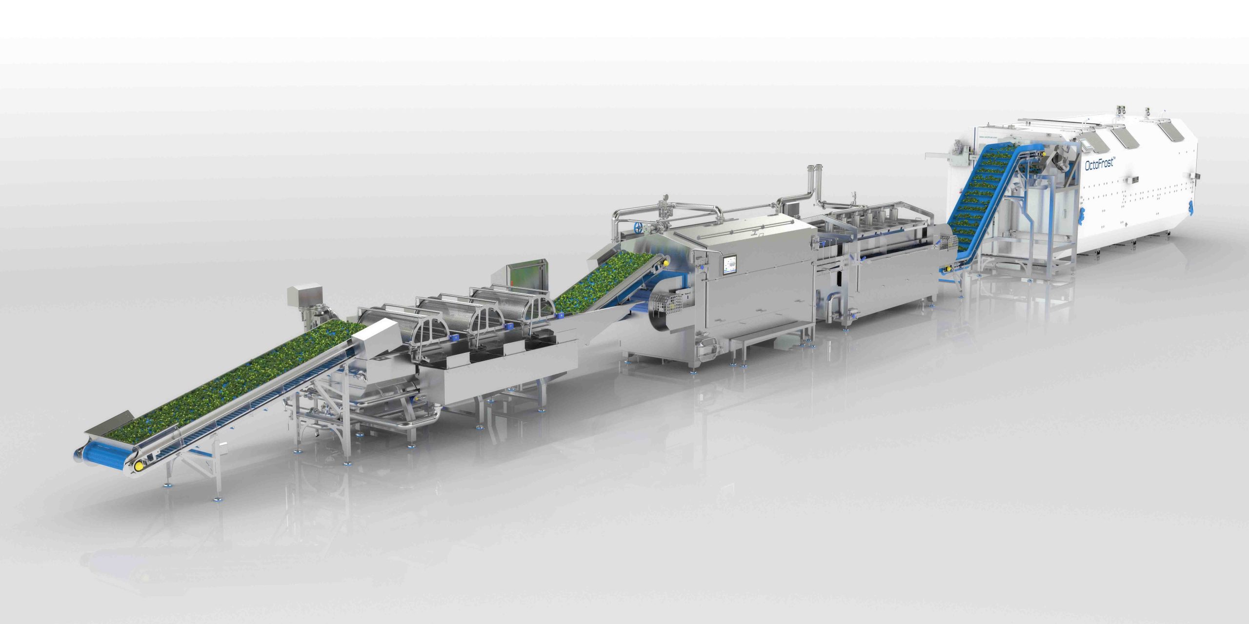 On 29 April 2021, OctoFrost released a series of animations elucidating the functions of its revolutionary technology. The sophisticated and technical aspects of the IQF Vegetable Processing Line are presented that showcase properties of each piece of machinery; the flotation Washer with aerial blower, OctoFrost IF Blancher, Flash Chiller, and IQF Vegetable Freezer. Working together with industry experts and graphic designers, OctoFrost achieved a complete visual representation that shows how food products are processed at each stage of the washing, blanching, chilling, and freezing processes.